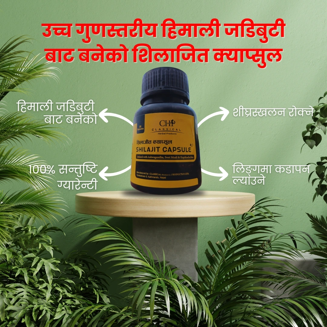 शुद्ध Shilajit, Safed Musli, Ashwagandha, आदि १०+ जडिबुटी बाट बनाइएको हो।